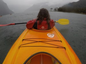 Après nous sommes arrivés à un observatoire sous-marin. Mais avant d’aller voir les poissons, nous avons fait du kayak! Nous avons dû bien nous couvrir car il pleuvait. Nous avons vu des cascades et une avalanche d’arbres. Ce sont des arbres qui ont leurs racines entremêlées et il suffit qu’un arbre tombe pour que tous les autres tombent.