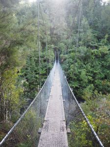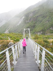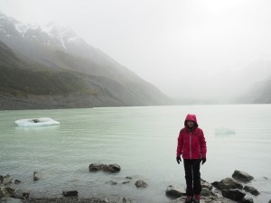 Nous avons fait une grande randonnée au Mont Cook sous la pluie pour aller voir un glacier (le glacier Hookey). Quand nous marchions, il y avait de grands ponts très hauts ! Nous n’avons aperçu qu’une toute petite partie du glacier car il y avait du brouillard. Dans le lac, il y avait des icebergs.
